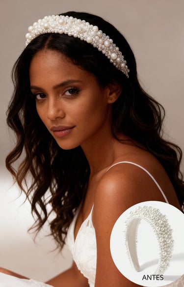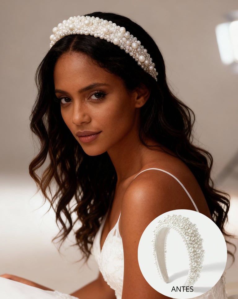 Criamos modelos realistas, exclusivas e cuidadosamente desenvolvidas para valorizar cada detalhe das suas joias. As imagens resultantes apresentam acabamento impecável, iluminação precisa e estética sofisticada para noivas — características essenciais para marcas que buscam transmitir credibilidade, modernidade e elegância.