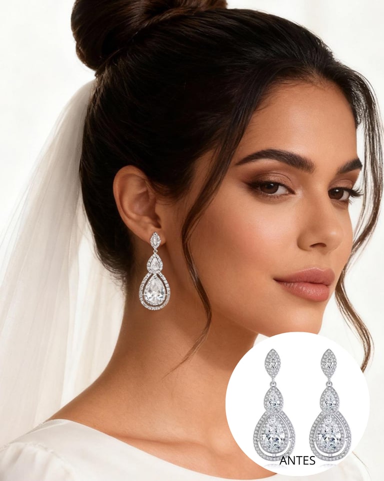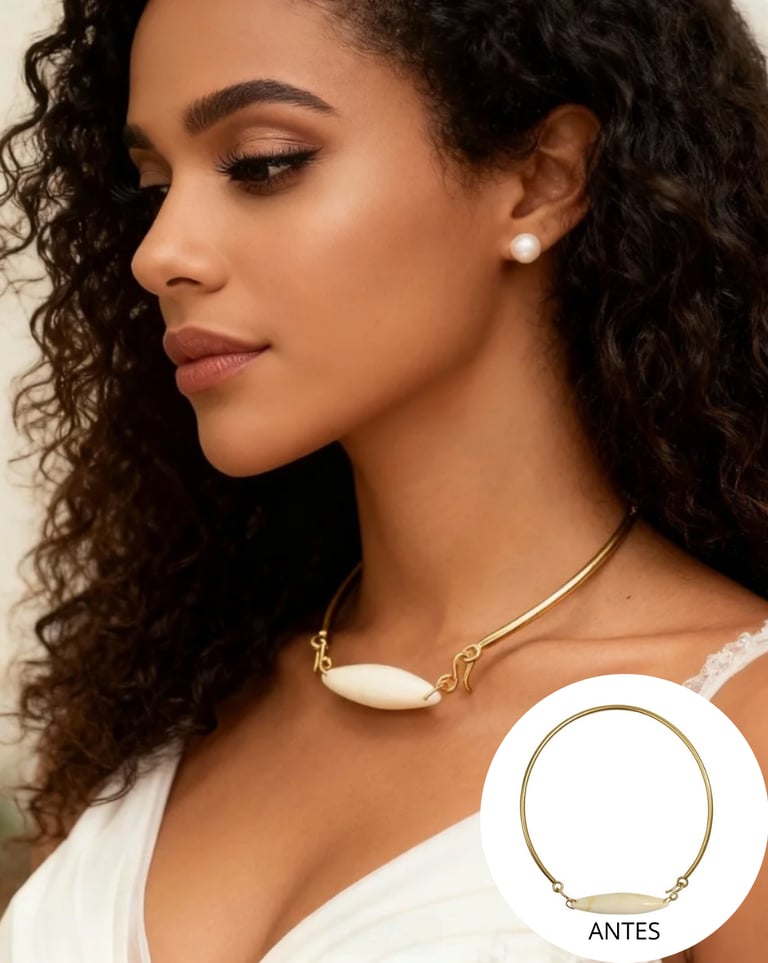 Tenha fotos impecáveis das suas joias aplicadas em modelos realistas e exclusivas, criadas sob medida para o seu catálogo. Cada imagem é desenvolvida com atenção aos detalhes: pele, luz, textura e brilho. Tudo para valorizar suas peças e elevar a percepção de luxo da sua marca.