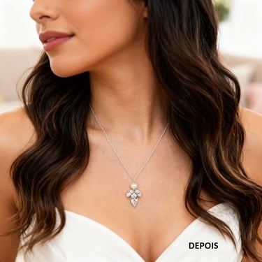 Sua imagem possui fundo, textura, cor? Está em baixa Resolução ou desfocada? Não se preocupe! Nós convertemos a foto do seu produto e adaptamos através da manipulação profissional destacando a beleza das suas joias, apresentadas de forma impecável através das nossas modelos ultra realistas e imagens 4k.